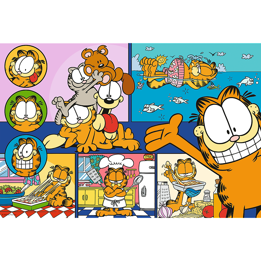 Leniwy Garfield to puzzle składające się ze 100 elementów, zaprojektowane z myślą o małych fanach bajki o Garfildzie. Puzzle przedstawiają rudego kota Garfilda podczas różnych czynnści. Po ułożeniu układanki powstanie obrazek o wymiarach 410x275 mm.
