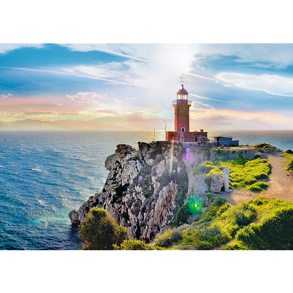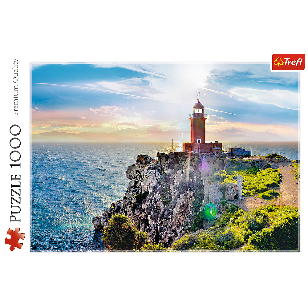 Puzzle 1000 elementów przedstawiające latarnię morską w greckim Melagavi. Po ułożeniu powstanie obrazek o wymiarach 68x48 cm. Wysoką jakość, nasycenie kolorów i bezpieczeństwo układania zapewnia kalandrowany papier odbijający światło, pokryty ekologicznymi farbami spożywczymi.