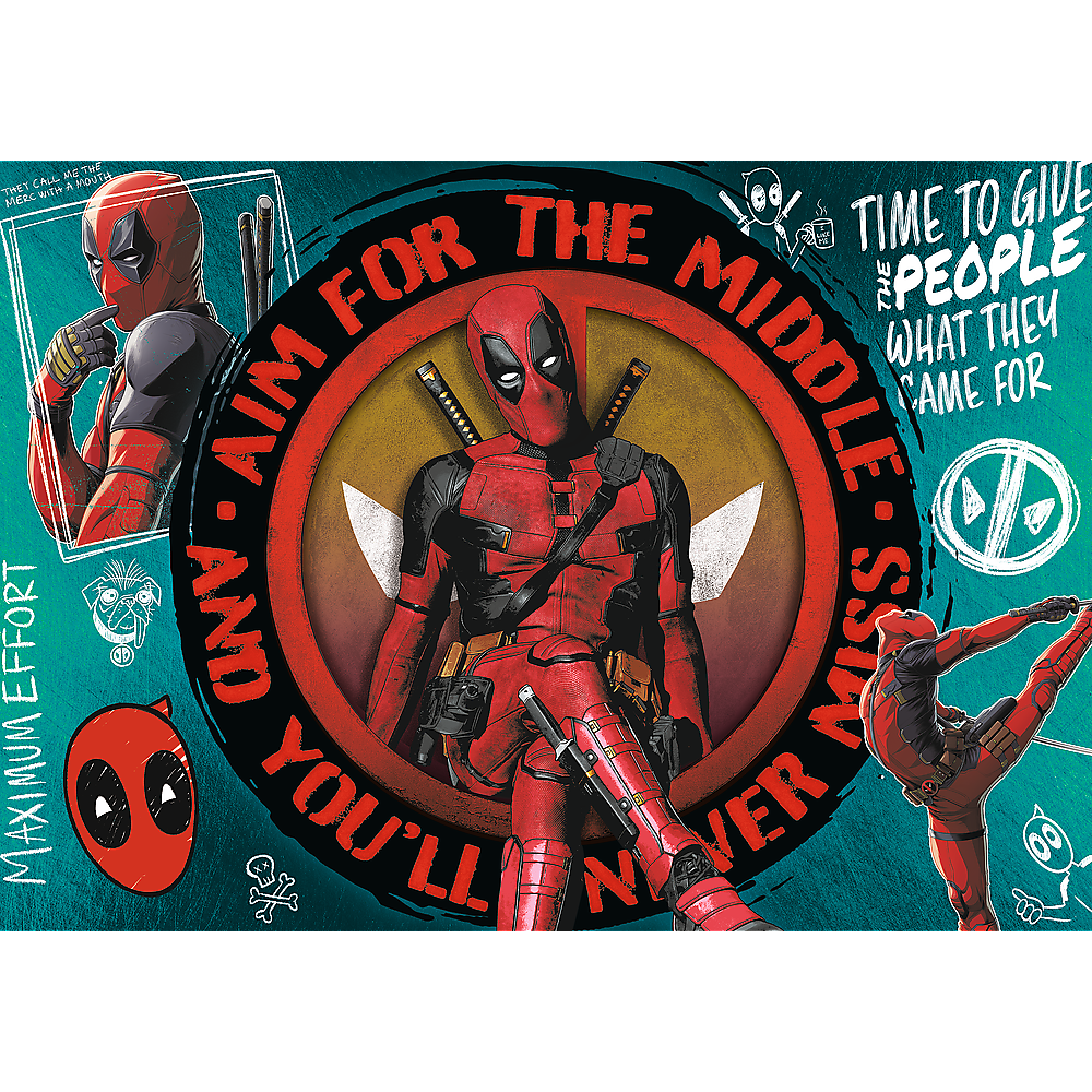 Puzzle Deadpool przedstawiają niezapomniane ujęcie z filmu Marvela. Po ich ułożeniu powstanie obraz o wymiarach 683x480 mm.