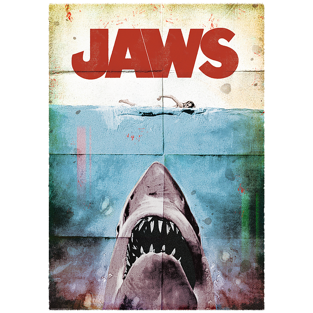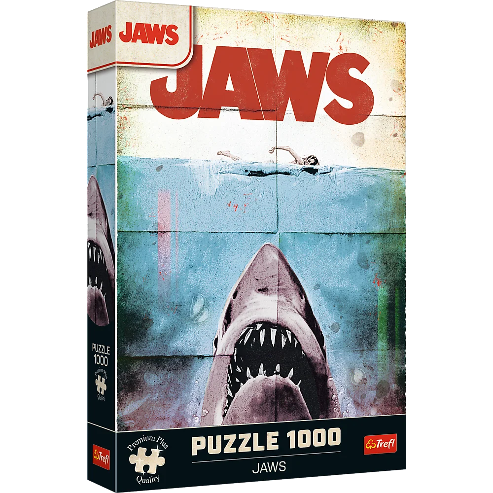 Puzzle Jaws przedstawiają kultowy plakat z filmu Szczęki. Po ich ułożeniu powstanie obraz o wymiarach 683x480 mm.