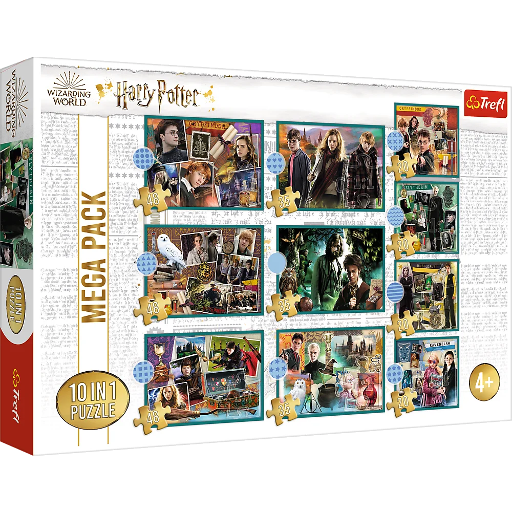 Puzzle składające się z 10 niezależnych układanek, zaprojektowane z myślą o wszystkich fanach filmu Harry Potter. Po ułożeniu układanek powstaną obrazki o wymiarach 223x156mm oraz 167x156mm. Zróżnicowana liczba elementów pozwala na zabawę zarówno młodszym, jak i nieco starszym dzieciom.