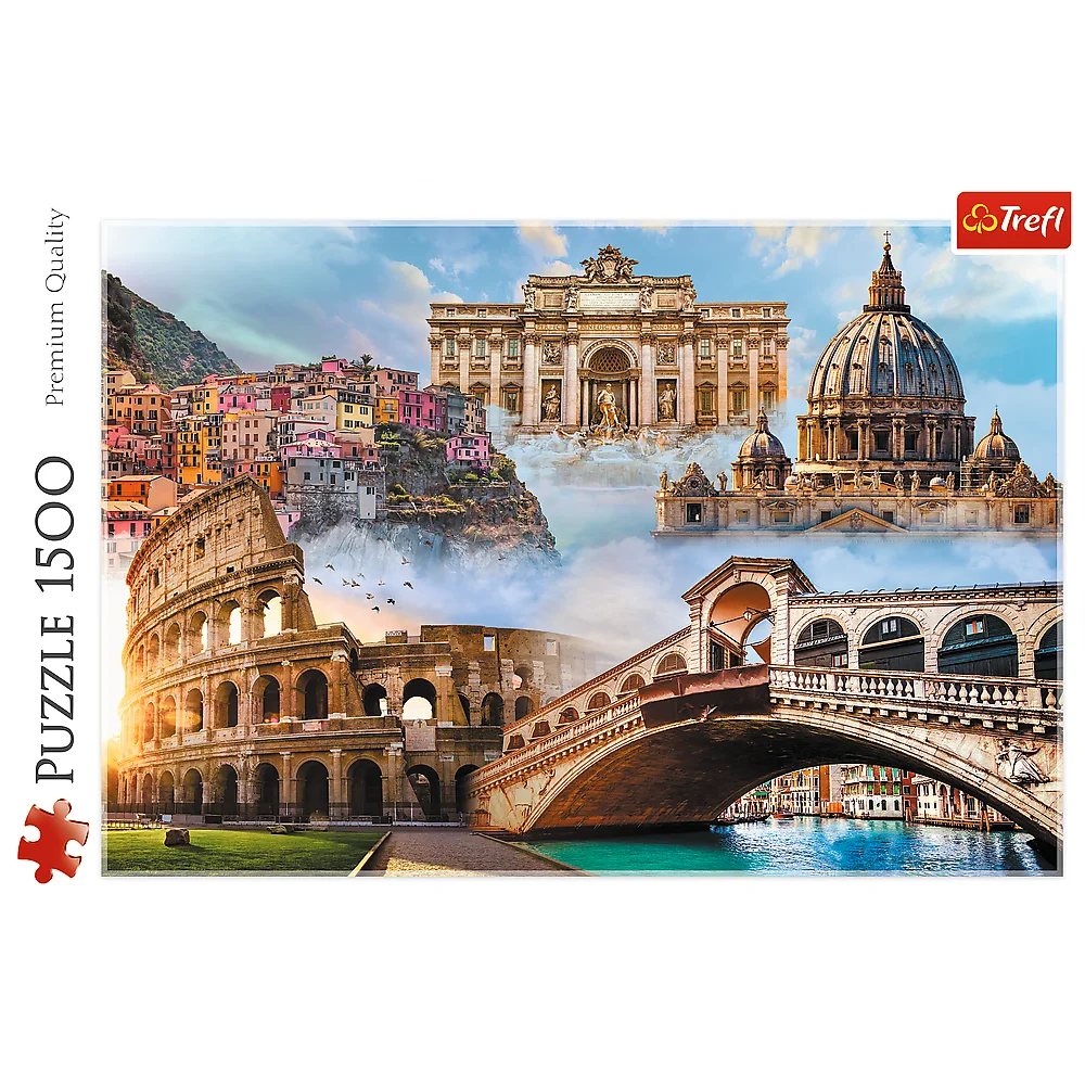 Puzzle 1500 elementów przedstawiające popularne miejsca we Włoszech.