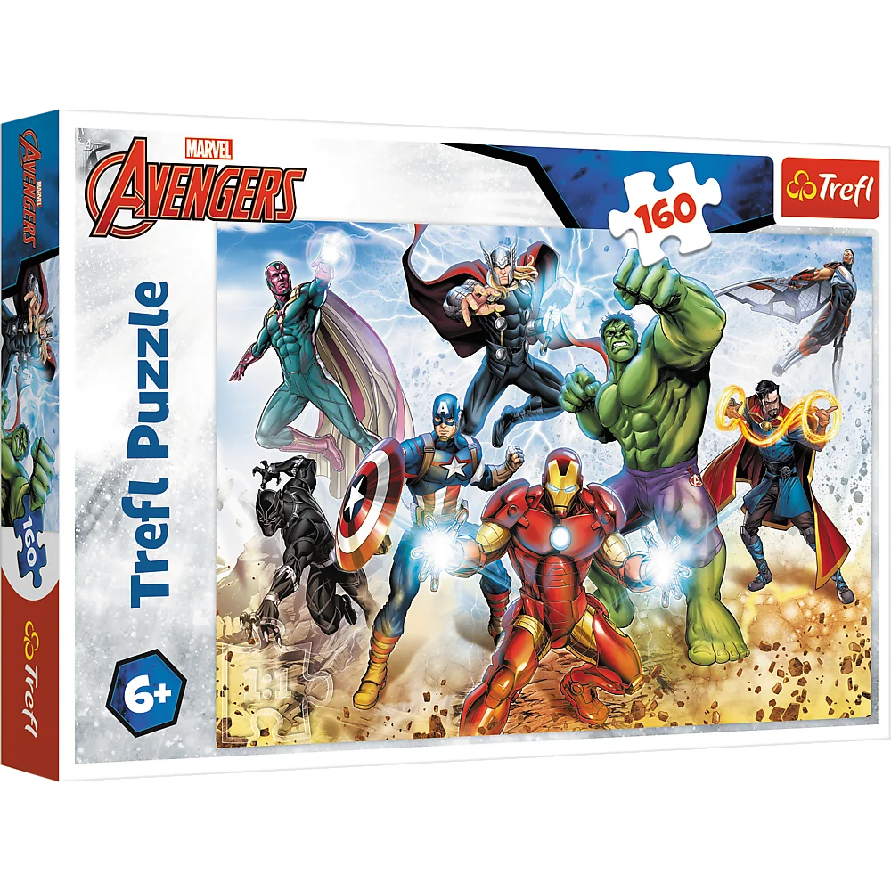 Puzzle składające się ze 160 elementów, zaprojektowaną z myślą o wszystkich fanach i fankach filmu animowanego Avengers. Po ułożeniu układanki powstanie obrazek o wymiarach 410 x 275mm. Produkt został wykonany z wysokiej jakości materiałów, z zastosowaniem specjalnego kalandrowanego papieru odbijającego światło, co ułatwia układanie.