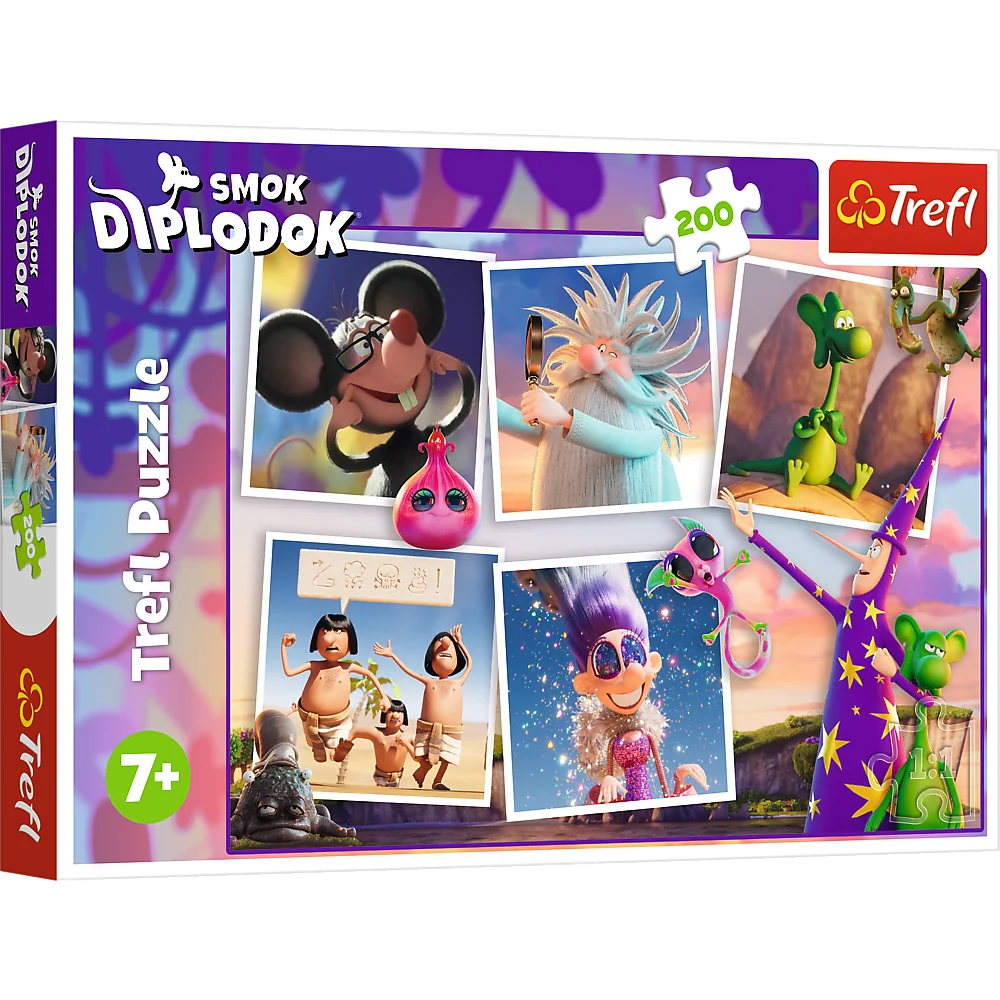Przygody Smoka Diplodoka to puzzle składające się z 200 elementów, które zachwycą małych fanów filmu animowanegoSmok Diplodok. Po ułożeniu powstanie obrazek o wymiarach 480x340 mm.