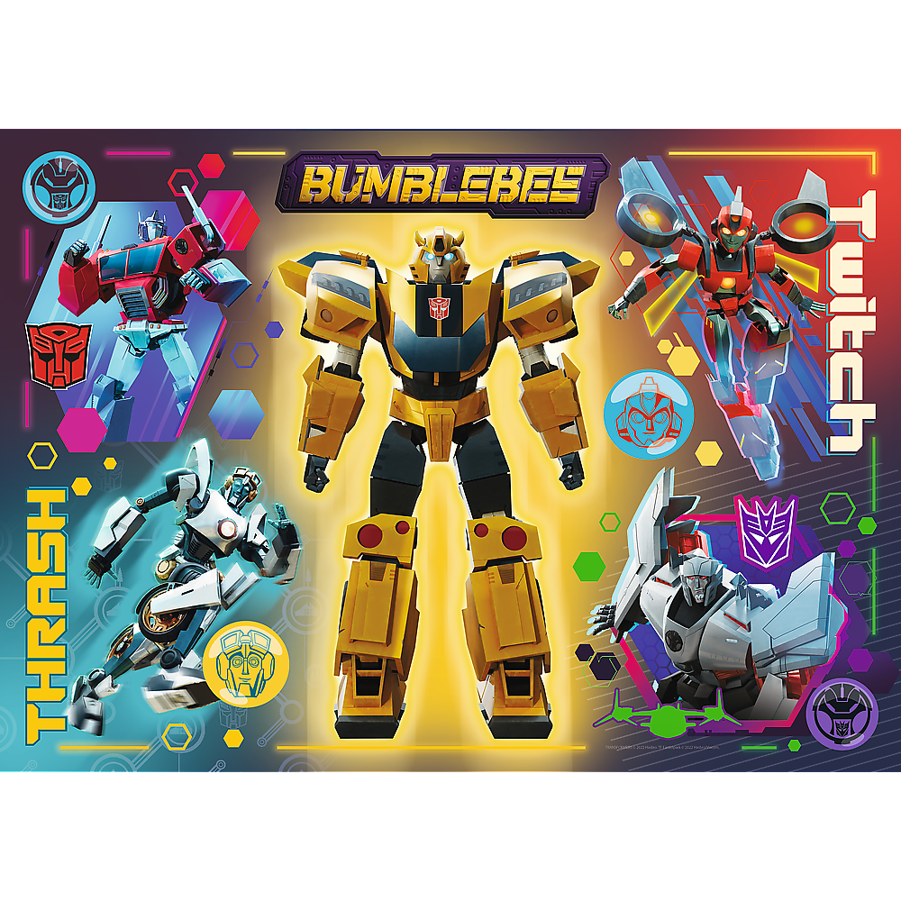 Transformers to puzzle składające się z 200 elementów z bohaterami z filmu Transformers EarthSpark. Po ułożeniu powstanie obrazek o wymiarach 48x34 cm. Wysoką jakość, nasycenie kolorów i bezpieczeństwo układania zapewnia kalandrowany papier odbijający światło i wykorzystanie materiałów ekologicznych.