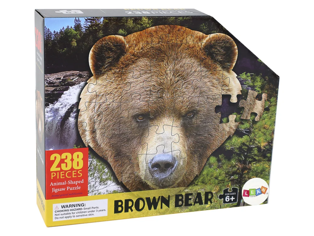 Puzzle składają się z 238 elementów i po złożeniu tworzą imponujący obraz o wymiarach 440mm x 420mm. Motyw niedźwiedzia brunatnego nadaje im wyjątkowy charakter, a kształt elementów przypominający głowę niedźwiedzia sprawia, że są one jeszcze bardziej unikalne.