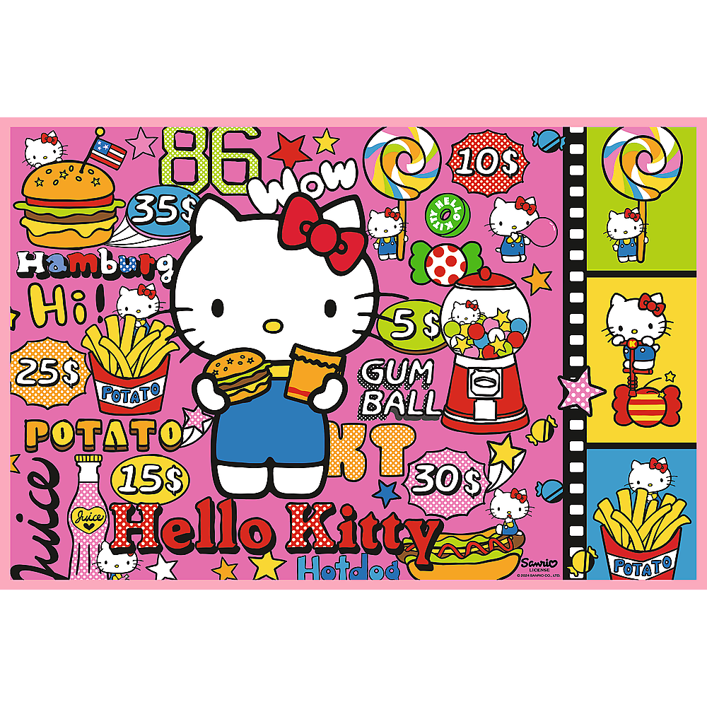Hello Kitty i przyjaciele to puzzle przedstawiające barwne kolaże, nawiązujące do bajki Hello Kitty. Każda z układanek pozwoli stworzyć obrazek o wymiarach 410x275 mm.