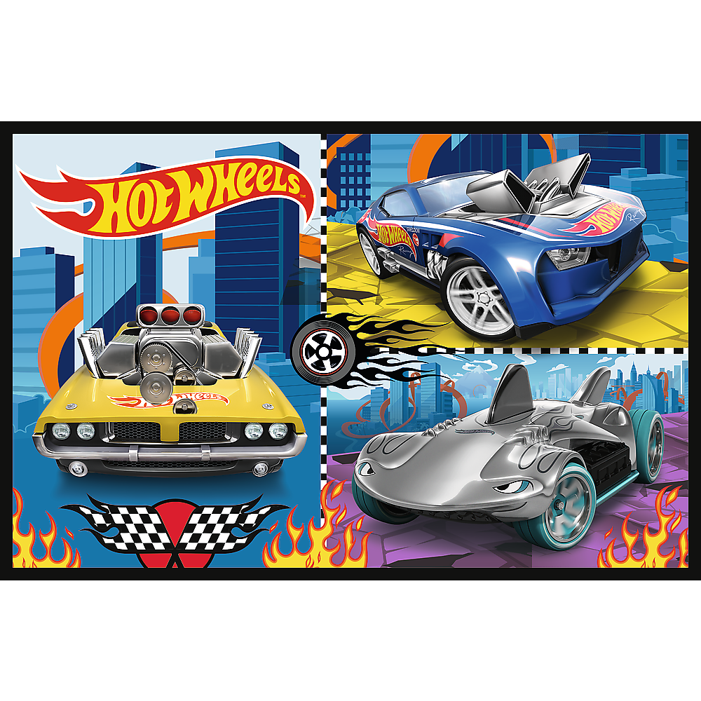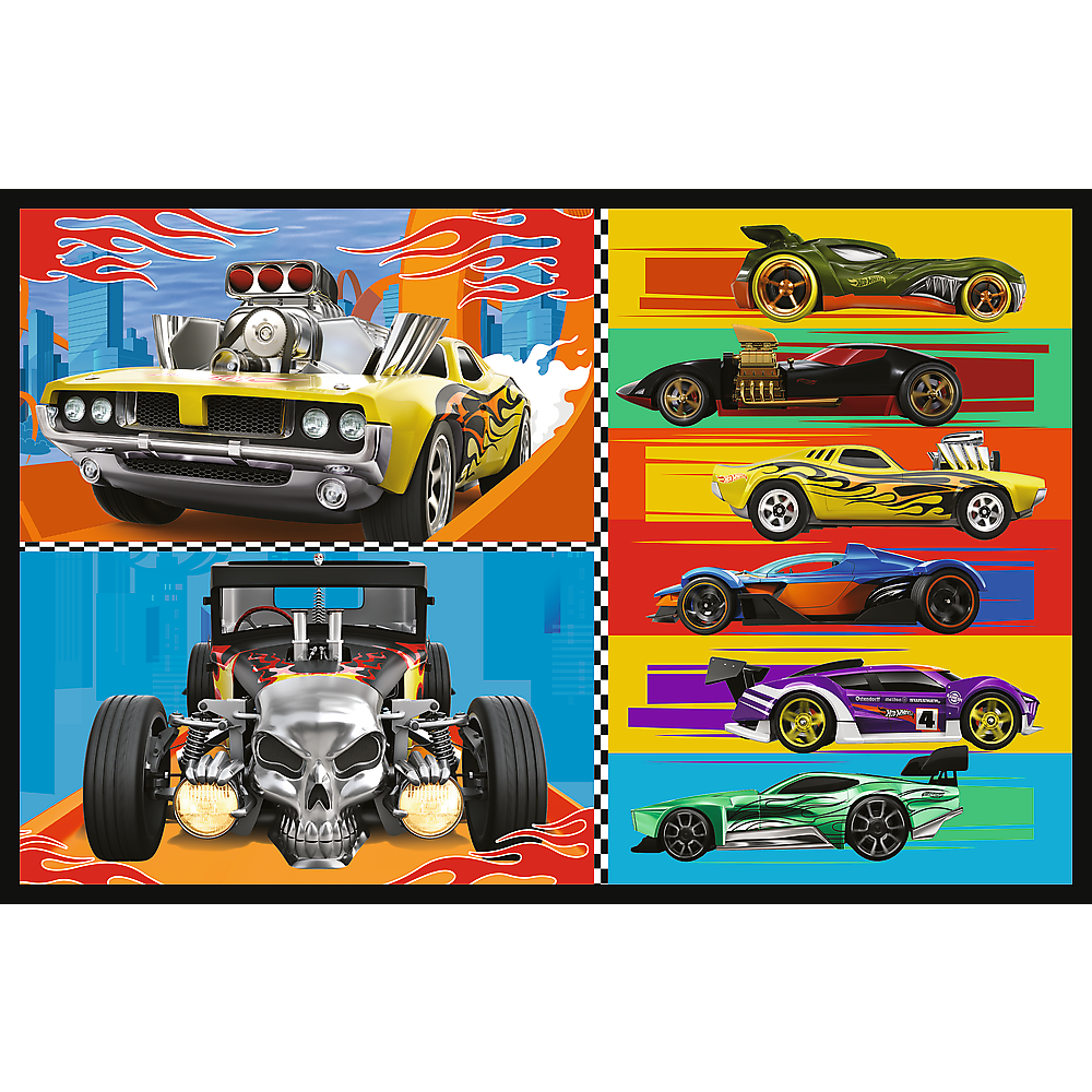 Samochodziki to puzzle przedstawiające kolaże z autami Hot Wheels. Każda z układanek pozwoli stworzyć obrazek o wymiarach 275x180 mm.