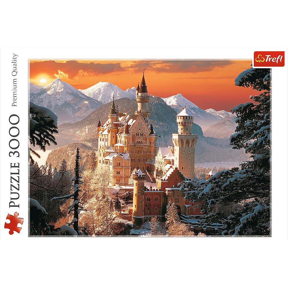 Puzzle 3000 elementów z widokiem na Zimowy zamek Neuschwanstein w Niemczech. Po ułożeniu powstanie obrazek o wymiarach 116x85cm. Wysoką jakość, nasycenie kolorów i bezpieczeństwo układania zapewnia wykorzystanie materiałów ekologicznych.