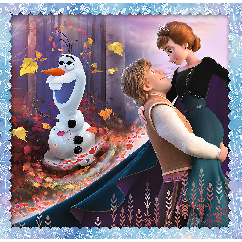 Magiczna opowieść to puzzle dla dzieci składające się z 3 niezależnych układanek, zaprojektowane z myślą o wszystkich fanach i fankach przygód bohaterów bajki Kraina Lodu. Po ułożeniu układanek powstaną obrazki o wymiarach 200x195 mm. Zróżnicowana liczba elementów pozwala na zabawę zarówno młodszym, jak i nieco starszym dzieciom.