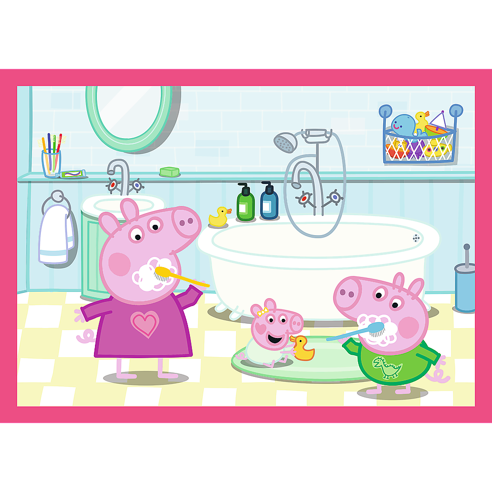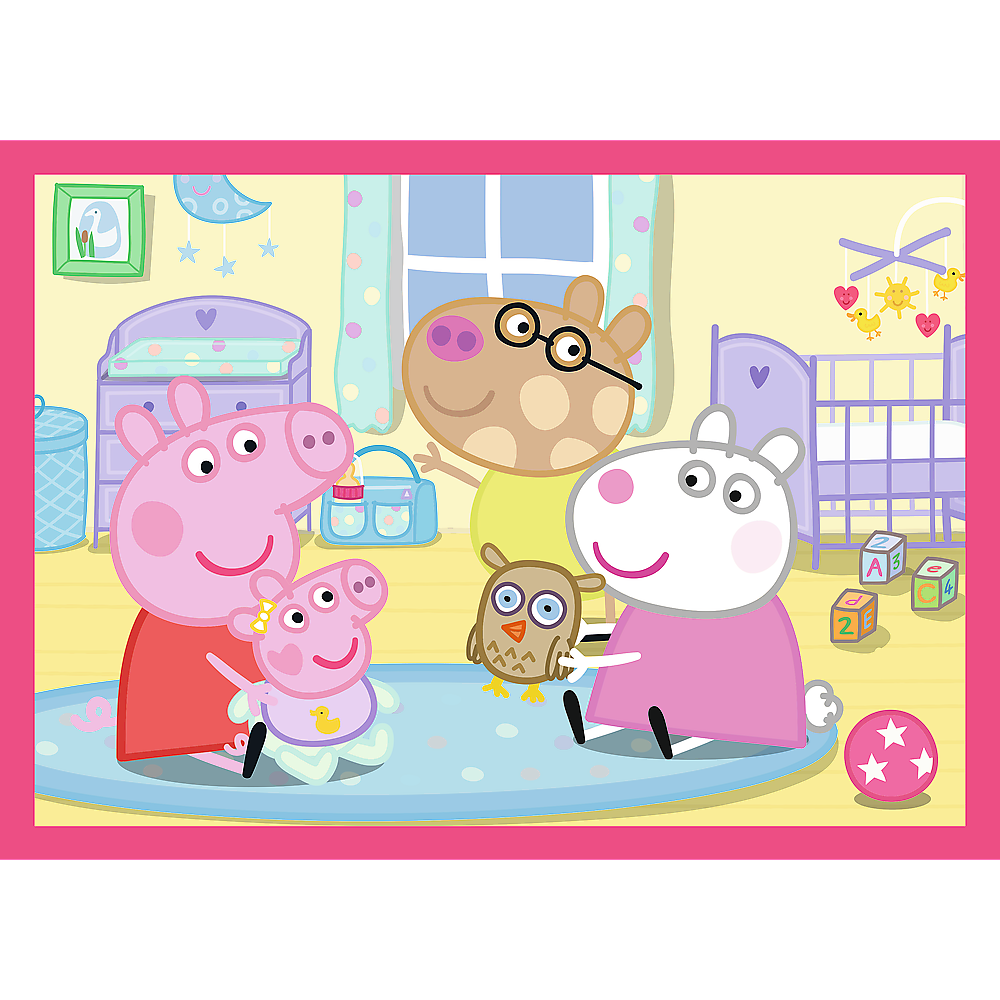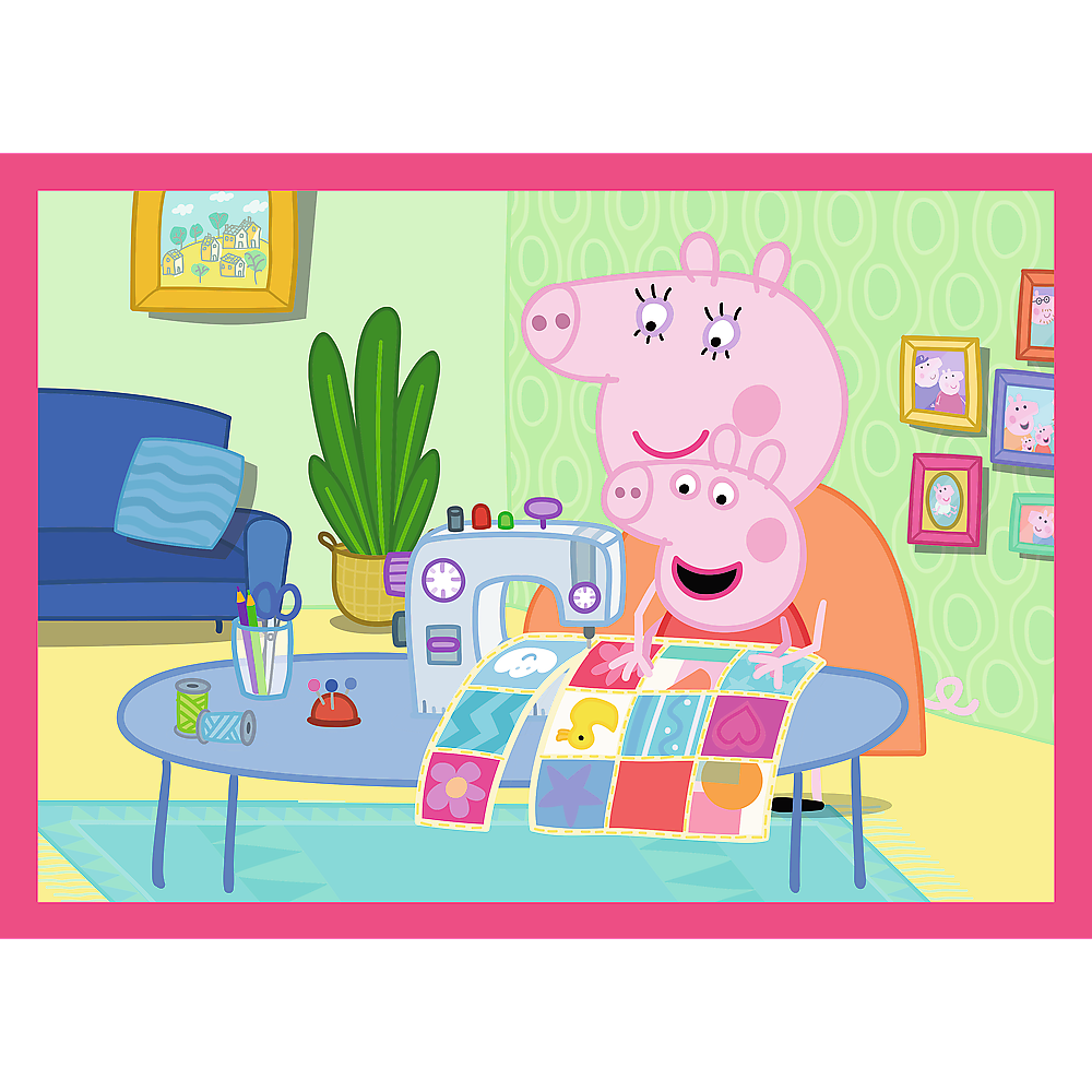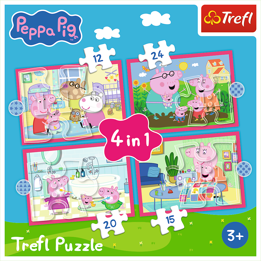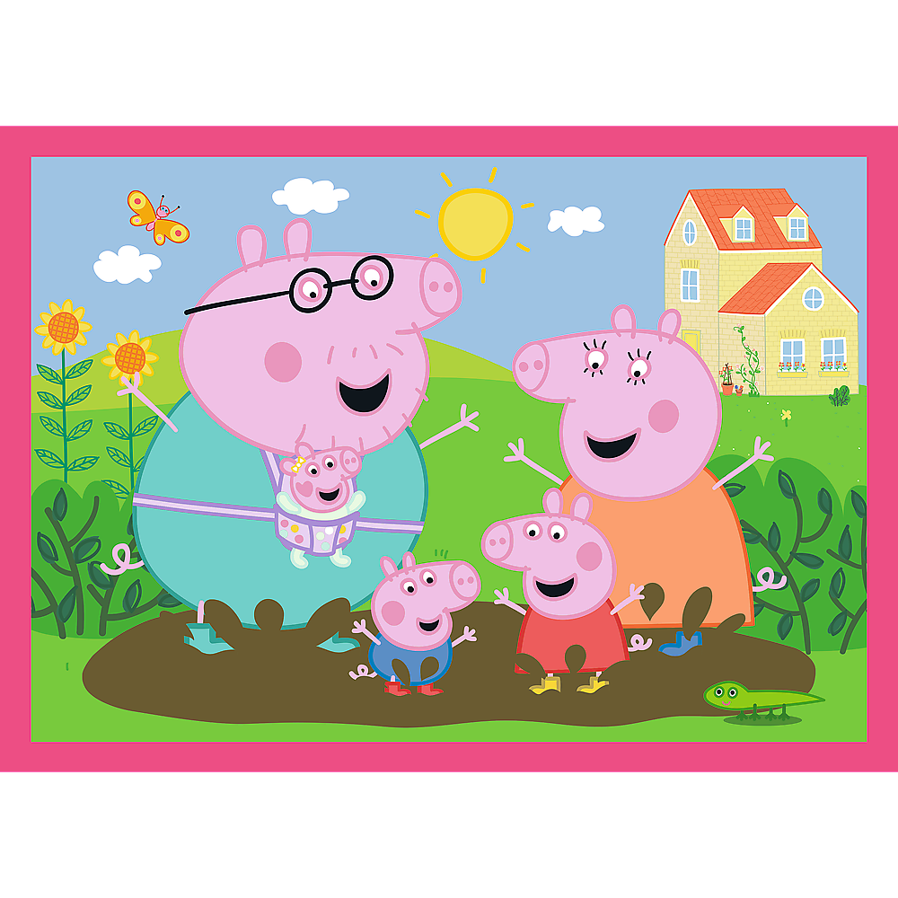 Peppa uwielbia przygody to 4 niezależne układanki dla dzieci, zaprojektowane z myślą o małych fanach przygód bohaterów bajki Świnka Peppa. Po ułożeniu puzzli powstaną obrazki o wymiarach 285x205 mm. Zróżnicowana liczba elementów pozwala na zabawę zarówno młodszym, jak i nieco starszym dzieciom.