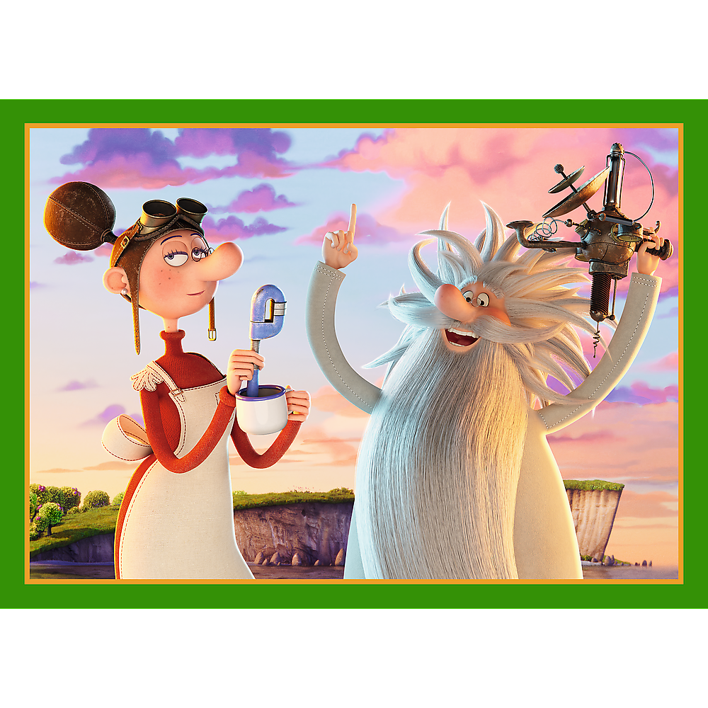 Świat Smoka Diplodoka to 4 niezależne układanki, zaprojektowane z myślą o małych fanach przygód bohaterów bajki Smok Diplodok. Po ułożeniu puzzli powstaną 4 obrazki, z czego największy o wymiarach 285x205 mm. Zróżnicowana liczba elementów pozwala na zabawę zarówno młodszym, jak i nieco starszym dzieciom.
