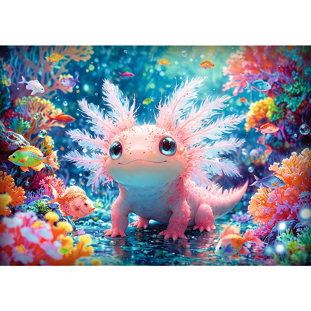 Puzzle Aksolotl składają się z 500 elementów i przedtawiają salamandrę meksykańską. Gotowa układanka ma wymiary 480x340 mm.