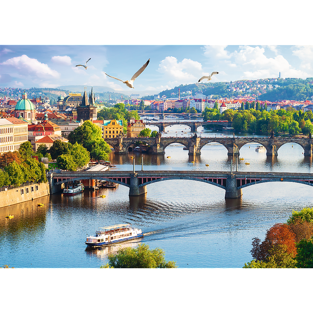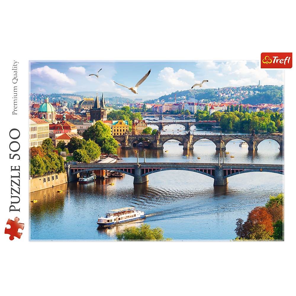 Puzzle 500 elementów z pięknym widokiem na czeską Pragę. Po ułożeniu powstanie obrazek o wymiarach 48x34 cm. Wysoką jakość, nasycenie kolorów i bezpieczeństwo układania zapewnia kalandrowany papier odbijający światło, pokryty ekologicznymi farbami spożywczymi.