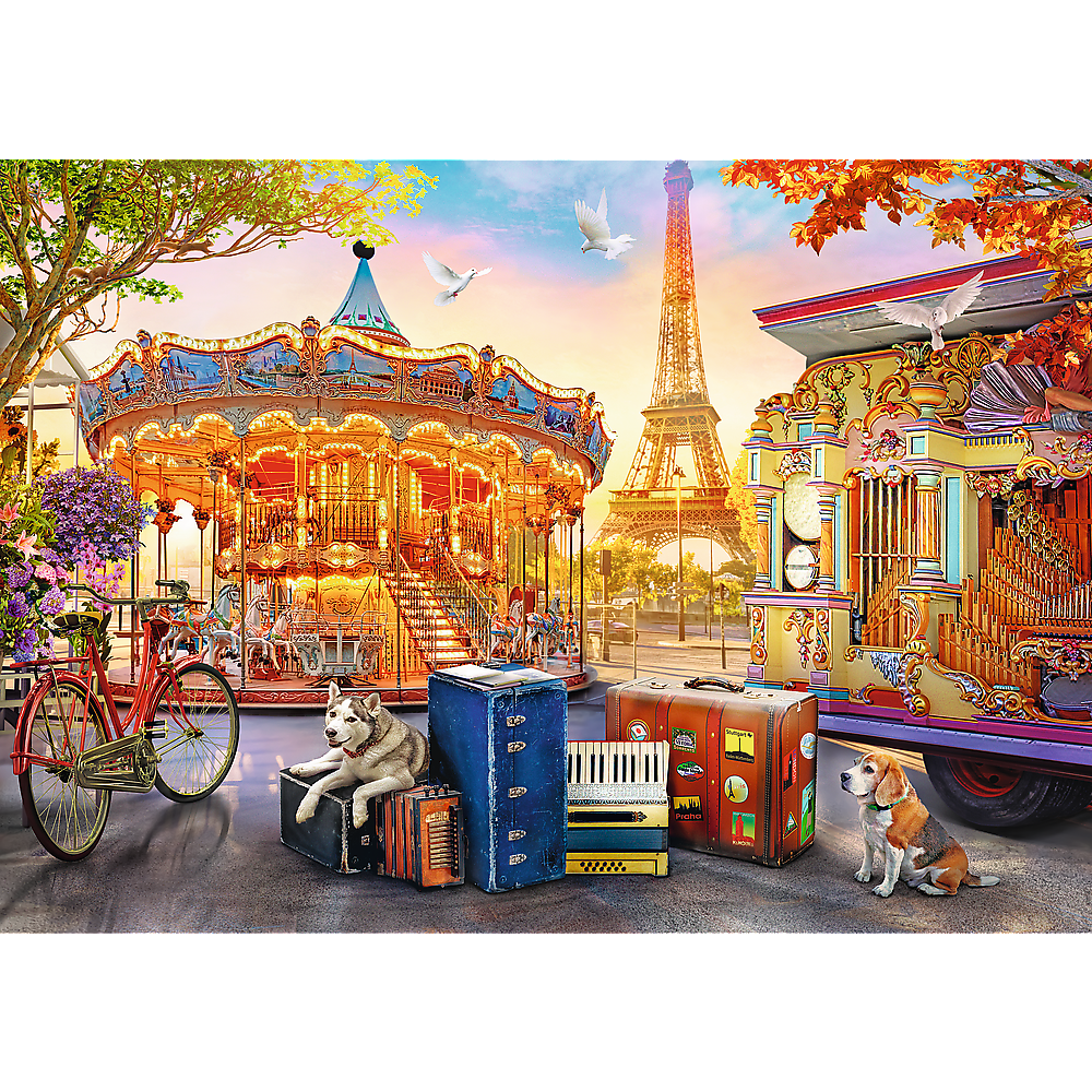 Puzzle składające się z 500 elementów przedstawiają urywek z wakacji w Paryżu. Po ułożeniu powstanie obrazek o wymiarach 580 x 340 mm.