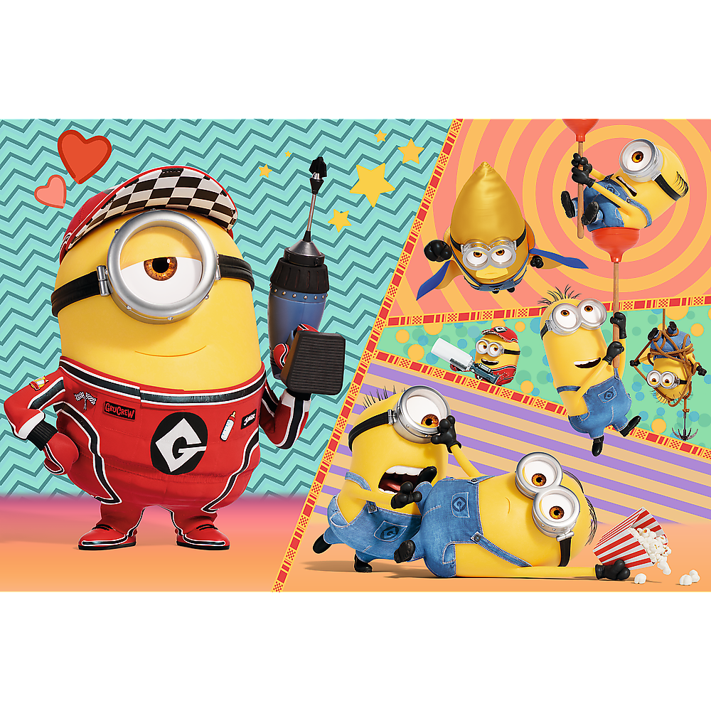 Wesołe Minionki to puzzle składające się z 60 elementów, zaprojektowane z myślą o małych fanach bajki Gru i Minionki: Pod Przykrywką. Po ułożeniu układanki powstanie obrazek o wymiarach 330x220 mm.