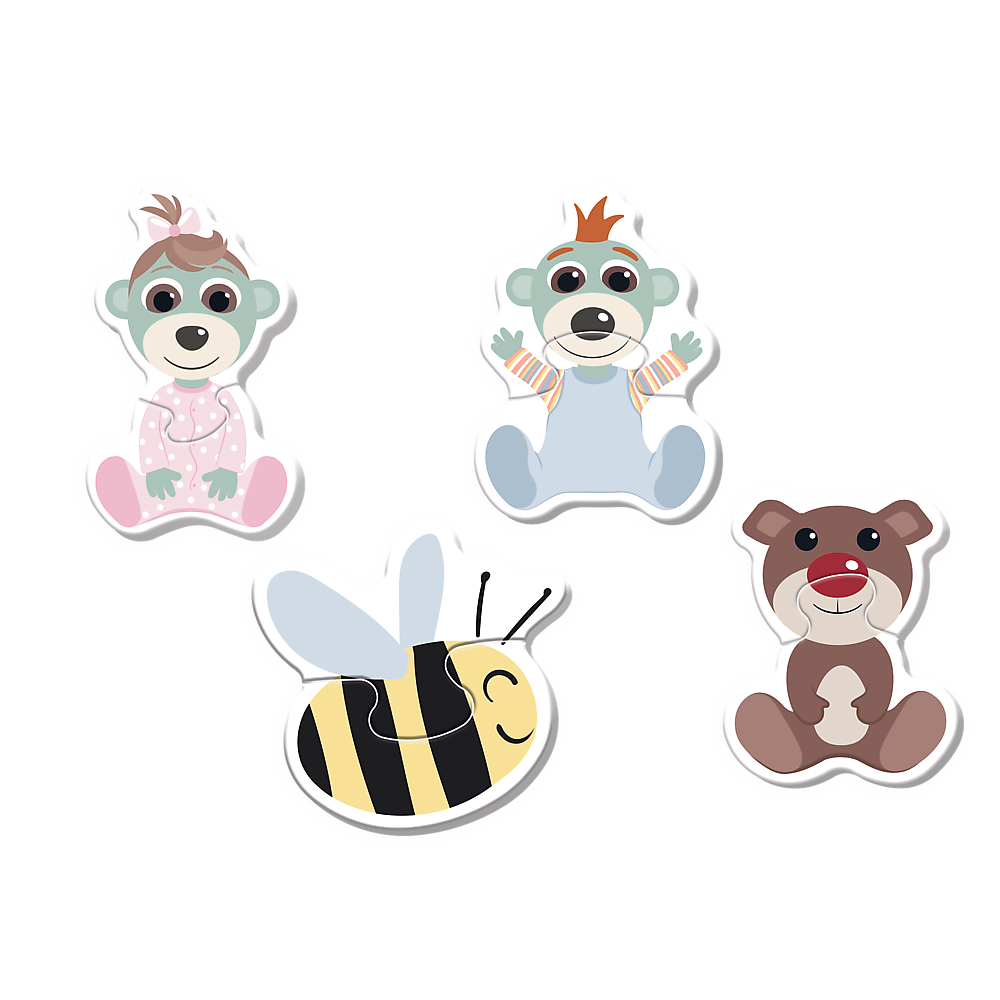 4 układanki,każda składa się z 2 dużych, grubych elementów – idealnych na start dla maluchów już od 1. roku życia.