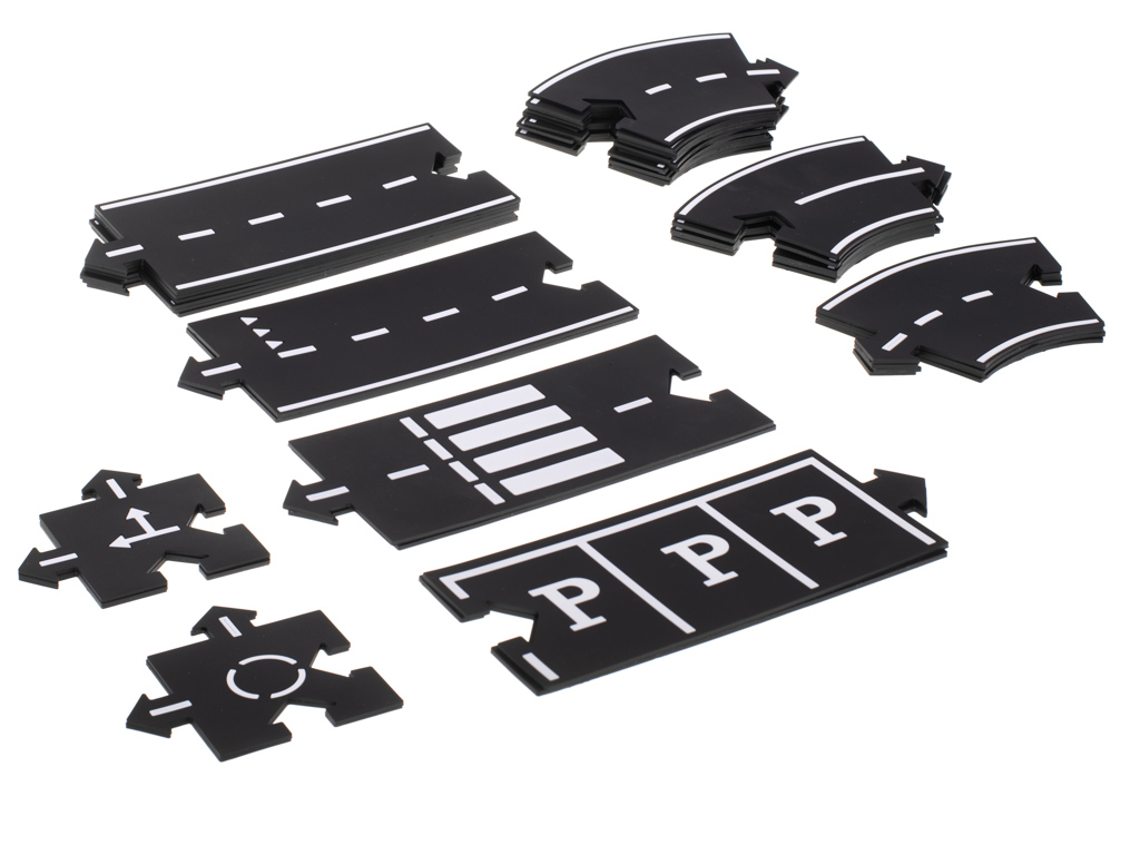 W zestawie znajduje się 40 elementów, co pozwala na tworzenie różnorodnych tras. Każdy element ma szerokość 8,5 cm, co idealnie pasuje do większości małych autek. Puzzle są nie tylko zabawne, ale także praktyczne. Ich piankowa grubość wynosząca 3 mm skutecznie chroni podłogę lub stół przed rysami, które mogą powstać w trakcie zabawy.