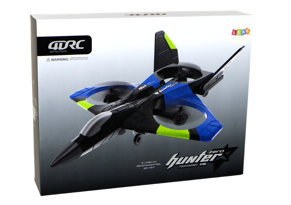 Pod skrzydłami samolotu znajdują się lampki LED w kolorach zielonym i niebieskim, co nie tylko dodaje efektownego wyglądu, ale także umożliwia zabawę w zmroku lub w nocy.