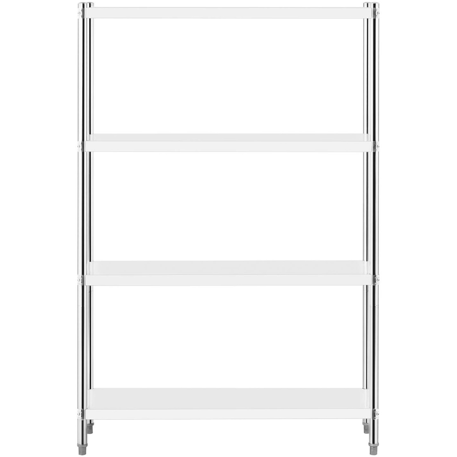 Regał magazynowy marki Royal Catering to idealne rozwiązanie do przechowywania w każdym pomieszczeniu. Wykonany z wysokiej jakości stali nierdzewnej, ma wymiary 120 x 40 x 180 cm i nośność każdej półki do 50 kg. Dzięki czterem półkom, możliwe jest jednoczesne przechowywanie wielu przyborów. Stabilna i trwała konstrukcja sprawia, że regał jest łatwy w pielęgnacji i spełnia najwyższe standardy gastronomiczne, co czyni go odpowiednim do kontaktu z żywnością.