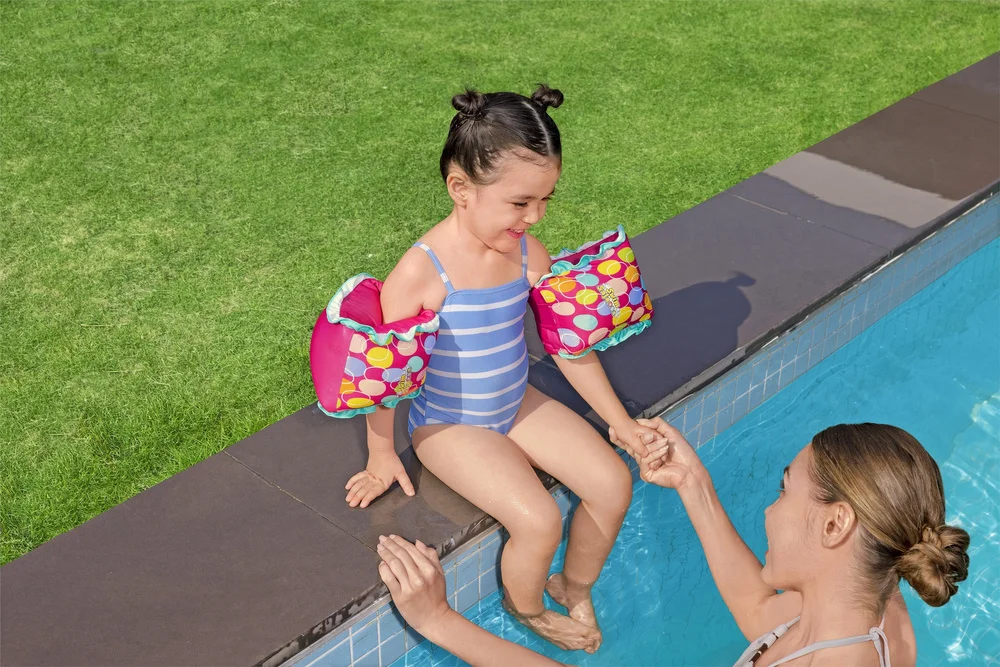 Dla maluszków pierwsza próba kontaktu z wodą może być trudna. Z pomocą przychodzą Ci rękawki, które idealnie sprawdzą się podczas początkowej nauki pływania twojego dziecka. Ich ciekawa kolorystyka oraz wzór lamy z pewnością zachęcą wszystkich najmłodszych do zabawy i aktywności.Dzięki nim możesz mieć również pewność, że Twoje dziecko jest bezpieczne w wodzie. Rękawki są stworzone z wytrzymałego materiału odpornego na uszkodzenia, oraz szybkie do napompowania. Po złożeniu nie zajmują dużo miejsca, dzięki czemu można je zawsze zabierać ze sobą na wodne wyprawy.