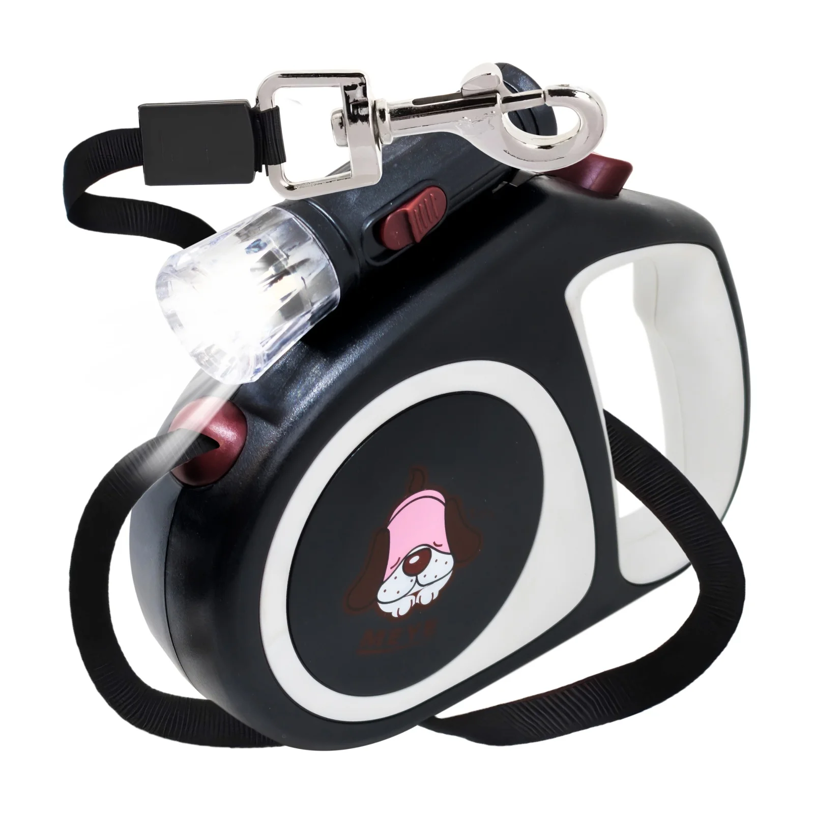 Smycz automatyczna zwijana dla psa kota z blokadą latarką LED do 15 kg 5 m - różowa