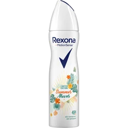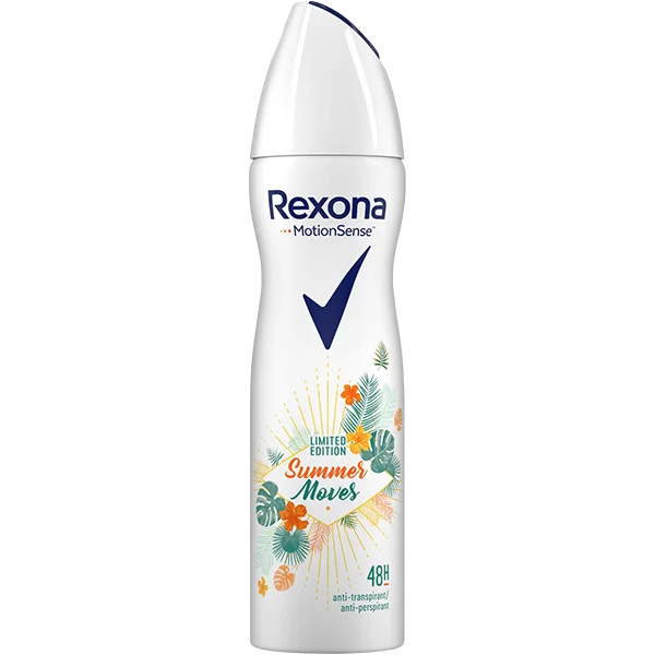 Rexona Women Summer Moves to antyperspirant w sprayu, który doskonale sprawdzi się w każdej sytuacji. Idealny dla aktywnych kobiet, które cenią sobie świeżość przez cały dzień. Produkt zapewnia niezawodną ochronę przed potem przez 48 godzin, co pozwala cieszyć się letnim zapachem bez obaw o nieprzyjemne zapachy.