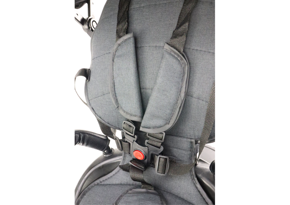Przedstawiony rowerek dziecięcy można przekształcać na wiele sposobów, dzięki czemu rośnie on razem z dzieckiem - bez potrzeby zamiany sprzętu na nowy. Wraz ze wzrostem wieku dziecka istnieje możliwość odpięcia prowadnicy, tym samym umożliwiając maluchowi samodzielną jazdę. Pompowane koła wysokiej jakości zapewniają komfort jazdy, a pięciopunktowe, zapinane pasy i blokada tylnych kół, zwiększają bezpieczeństwo dziecka podczas użytkowania rowerka.
