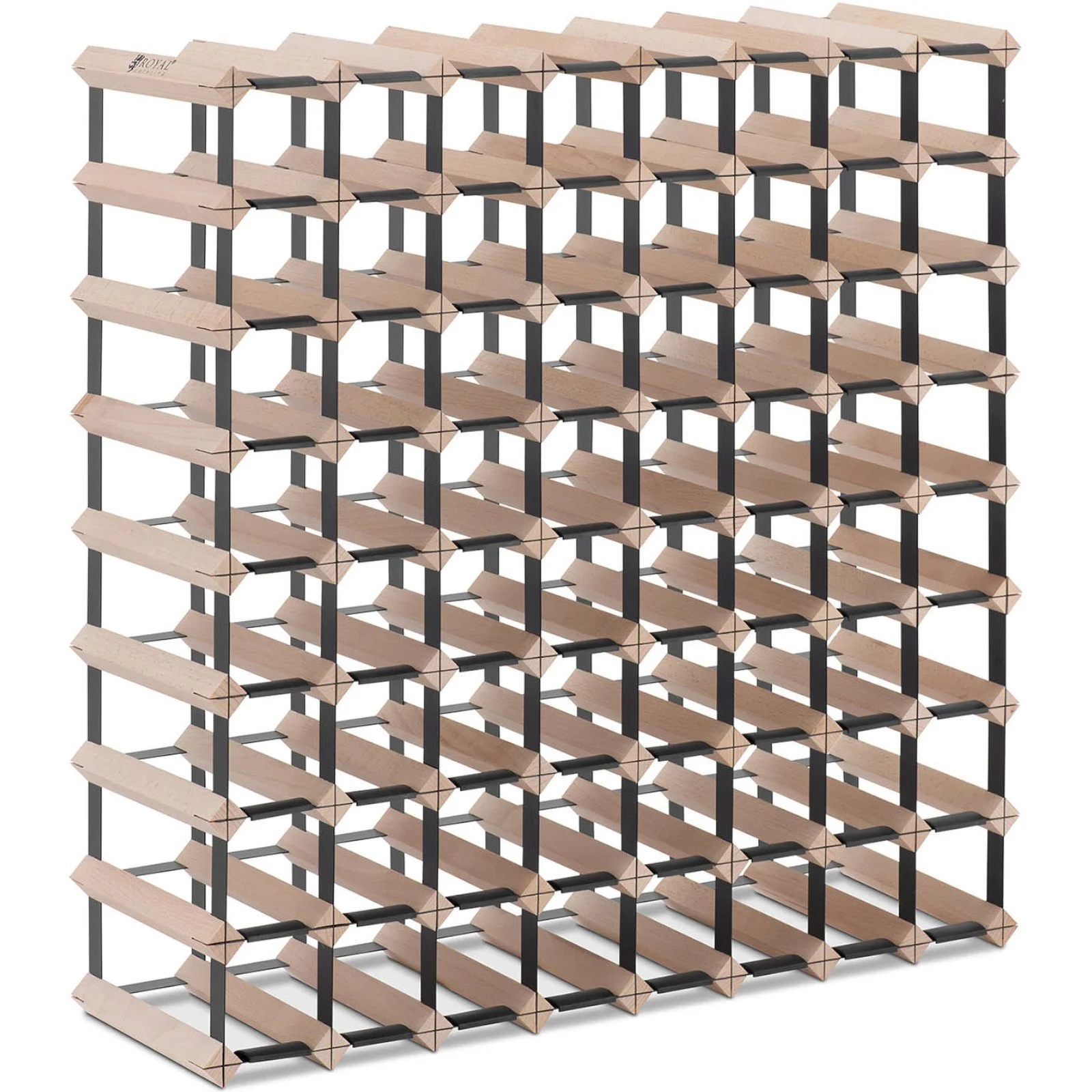 Elegancki stojak regał na wino stal i drewno bukowe - 72 butelki