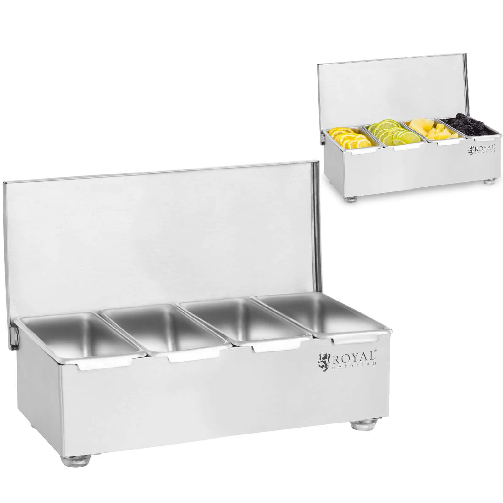 Pojemniki barmańskie na dodatki do drinków stalowe nierdzewne 4 szt. + Obudowa