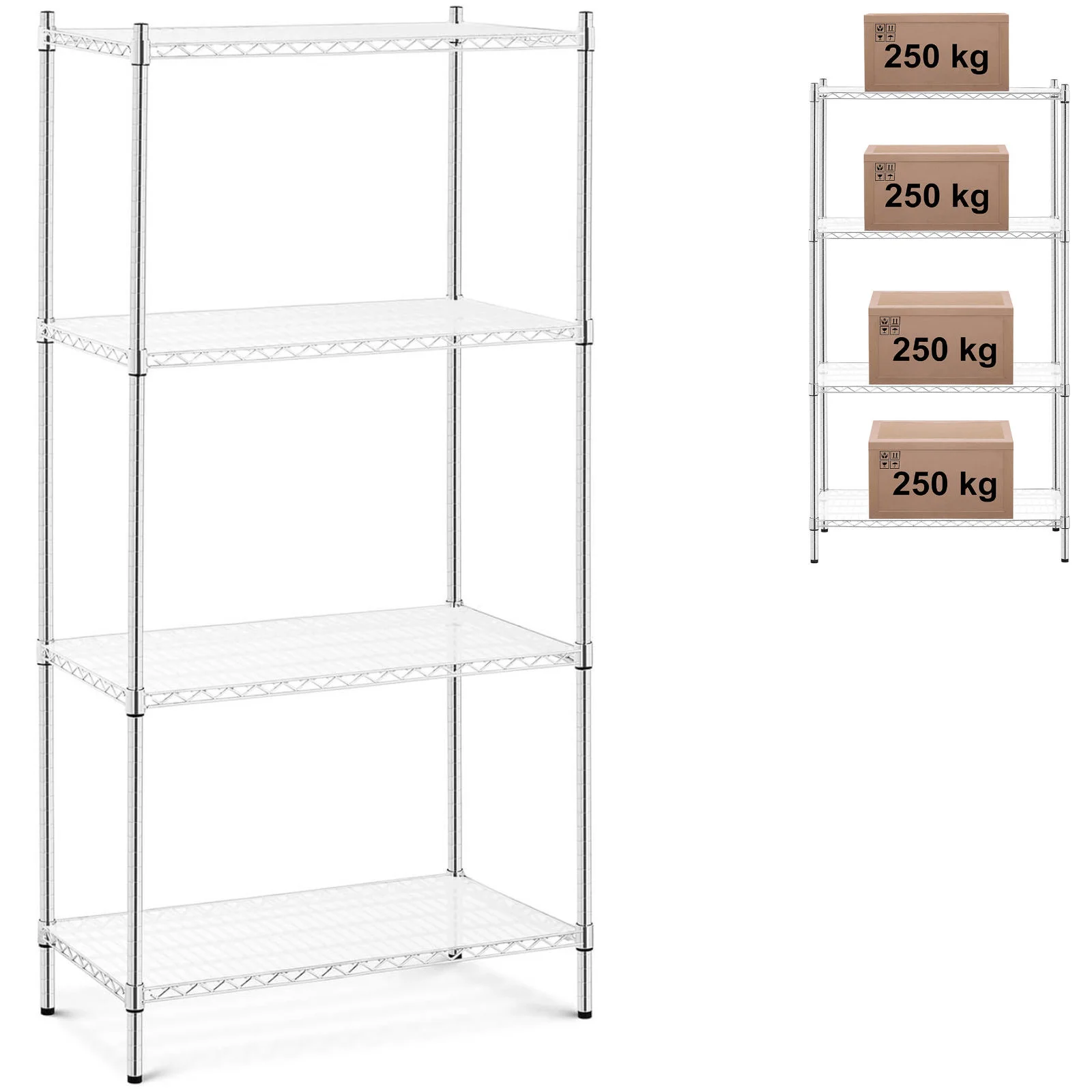 Regał warsztatowy chromowany druciany 4 półki + 4 maty do 1 t 1000 kg 90x45x180 cm