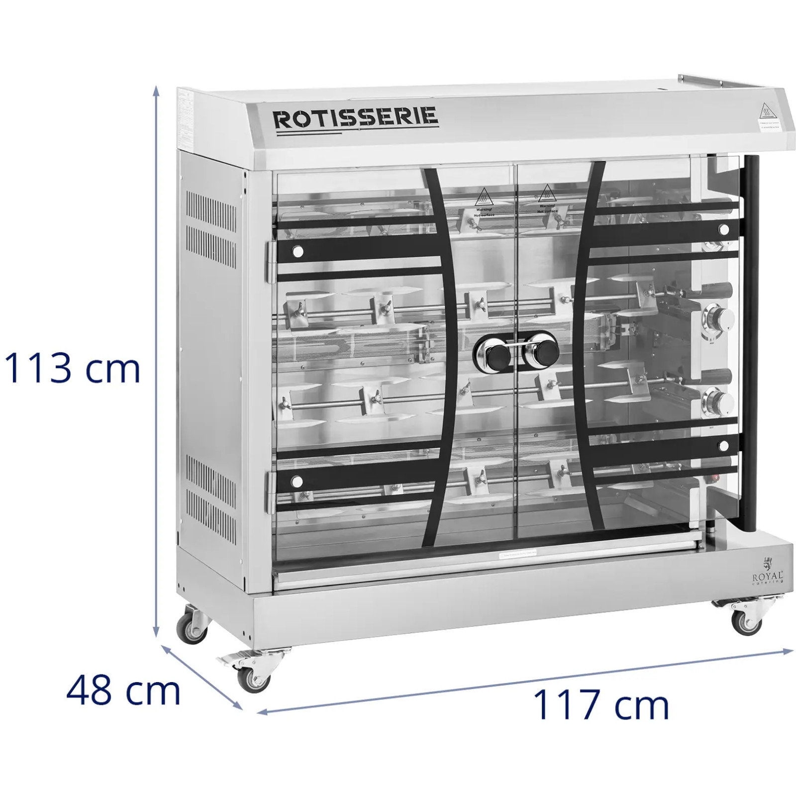 Rożen gazowy od marki Royal Catering to idealne rozwiązanie dla miłośników grillowania. Dzięki możliwości upieczenia do 4 kurczaków jednocześnie, możesz serwować pyszne i chrupiące dania, które zachwycą Twoich gości. Urządzenie działa na propan-butan i ma moc 16.5 kW, co zapewnia wydajność i komfort podczas przygotowywania potraw.
