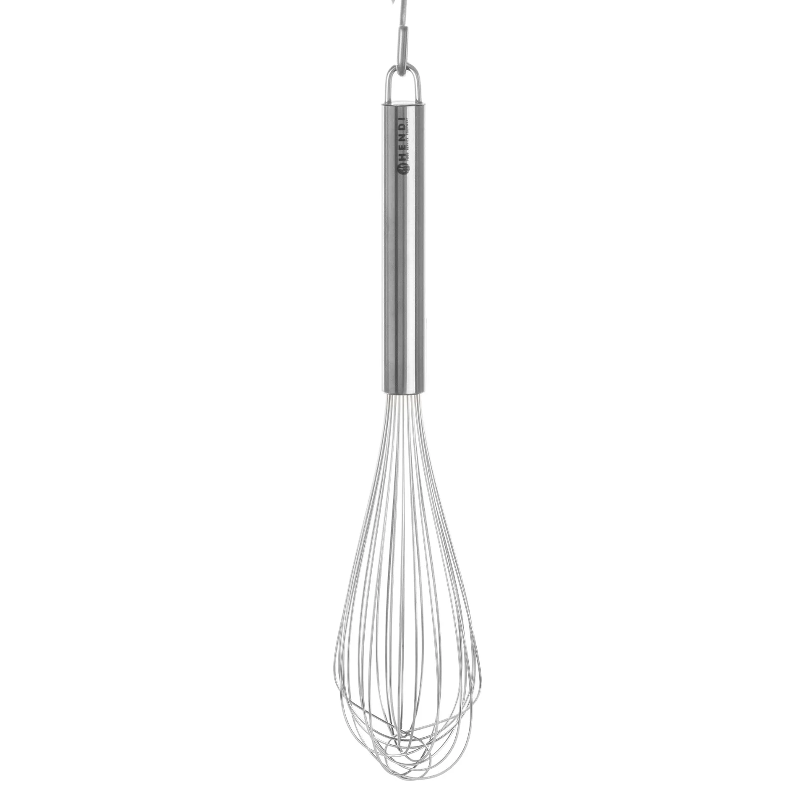 Praktyczny uchwyt z zawieszką umożliwia wygodne przechowywanie, dzięki czemu rózga jest zawsze pod ręką. Produkt jest dopuszczony do kontaktu z żywnością, co zapewnia bezpieczeństwo podczas użytkowania zarówno w kuchniach profesjonalnych, jak i domowych.