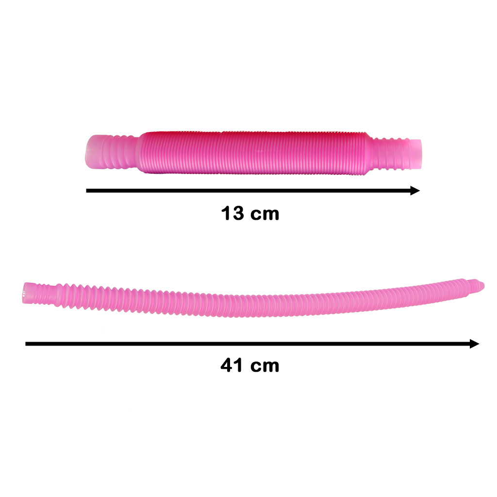 Każda rurka ma długość 41 cm po rozciągnięciu, co umożliwia formowanie serc, kwadratów, kół i innych kształtów. Zestaw składa się z 8 rurek o różnych kolorach, co dodatkowo ułatwia naukę kolorów i liczenia w zabawny sposób.