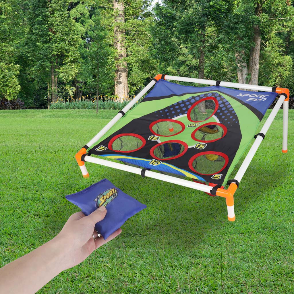 Zabawa polega na rzucaniu woreczków do oznaczonych otworów w tarczy. Można ustalić różne zasady: kto zdobędzie więcej punktów w krótszym czasie lub kto osiągnie lepszy wynik przy mniejszej liczbie rzuconych woreczków. To nie tylko gra, ale także sposób na rozwijanie refleksu i pamięci słuchowej.