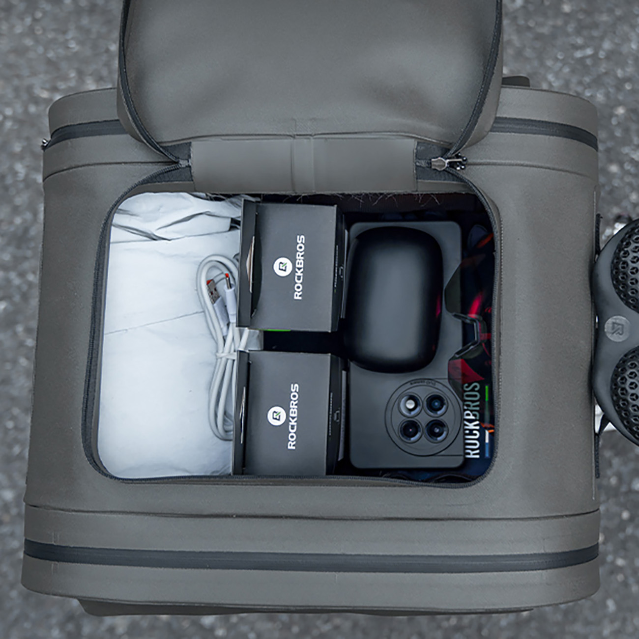 Wykonana z wodoodpornego materiału TPU 840D, skutecznie chroni przechowywane przedmioty przed deszczem. Przemyślana konstrukcja z dużym, podwójnym zamkiem oraz bocznymi kieszeniami zapewnia wygodny dostęp do zawartości. Dodatkowe elementy, takie jak uchwyt do przenoszenia oraz odblaskowe detale, podnoszą komfort użytkowania i bezpieczeństwo podczas jazdy.