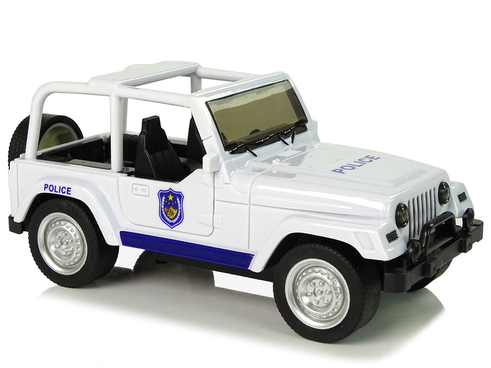 Pudełko, w które jest zapakowane, będzie ładnie prezentować się na półce. Posiada napęd pull-back, wykonany został z plastiku na gumowych oponach. Na przodzie i na boku białego autka widnieją niebieskie wzory, napis POLICE. Otwarte auto pozwala zobaczyć z każdych szczegółem wygląd wnętrza takiego auta. Dodatkowo posiada otwierane przednie drzwi oraz koło zapasowe. Zabawka sprawi radość maluchowi, a może i dorosłemu. Rozbudzi w Twoim dziecku ciekawość otaczającego świata, pomoże rozwinąć cechy, takie jak precyzja czy spryt.