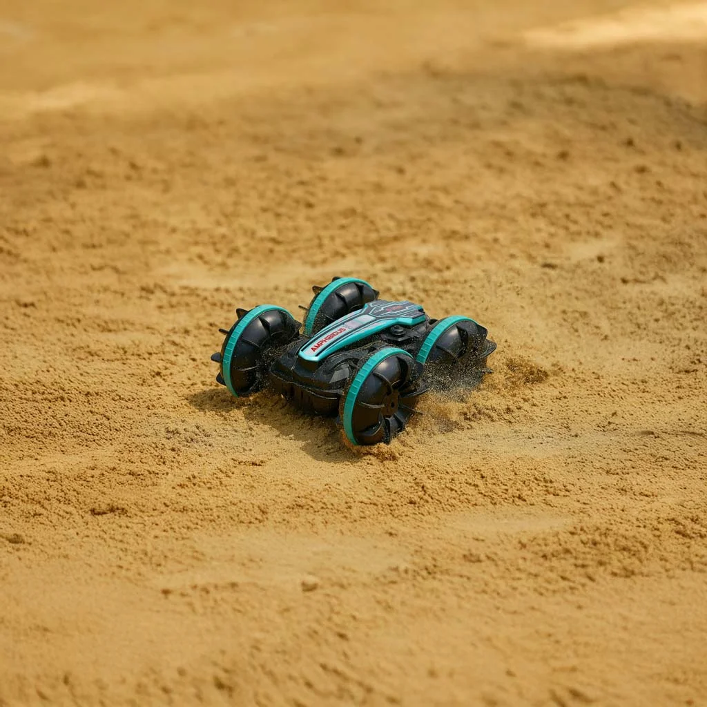 Kontroler w formie opaski na dłoń umożliwia wygodne sterowanie pojazdem. Samochód intuicyjnie się porusza, podążając za ruchem nadgarstka. Można wybrać spośród 3 stopni prędkości – zasięg kontrolera wynosi do 40 metrów. Amfibia jest zasilana akumulatorem, który działa do 15 minut na jednym ładowaniu.