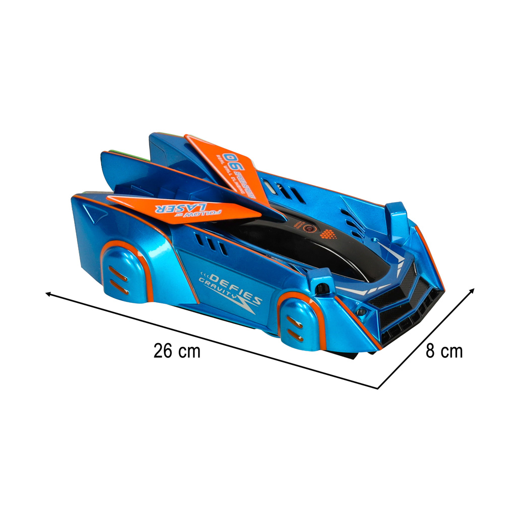 W zestawie znajdziesz samochód jeżdżący po ścianie, kontroler oraz kabel ładujący. Daj się porwać przygodzie i stwórz własny tor wyścigowy w domu!