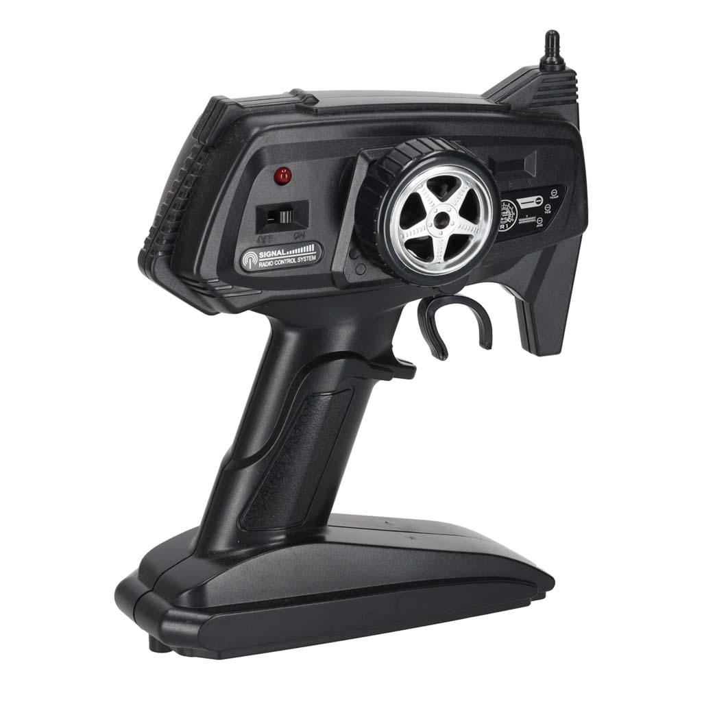 Model działa na częstotliwości 2.4 GHz, co zapewnia stabilne połączenie z pilotem o zasięgu do 25 metrów. Samochód jest wyposażony w efekty świetlne, co dodaje realizmu podczas jazdy. Akumulator 7.4 V zapewnia około 20 minut zabawy na pełnym naładowaniu.