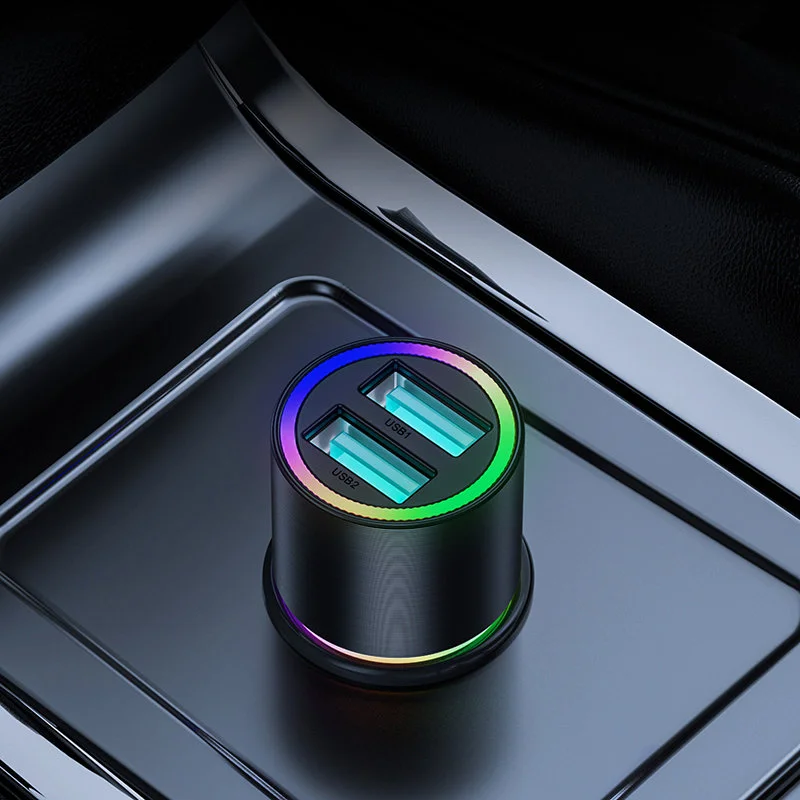 Inteligentna ładowarka samochodowa z dwoma portami USB to idealne połączenie stylu i funkcjonalności. Dzięki kompaktowym wymiarom, urządzenie nie zajmuje dużo miejsca w aucie. Efektowne podświetlenie LED sprawia, że ładowarka jest zarówno widoczna, jak i elegancka.