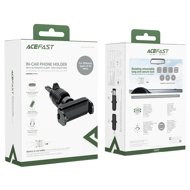 Uchwyt Acefast D9 automatycznie zaciska szczęki po podłączeniu do ładowarki samochodowej, co zapewnia wygodę użytkowania. Działa także bez dostępu do prądu dzięki wbudowanej baterii o pojemności 250 mAh, wystarczającej na około 800 zamknięć.