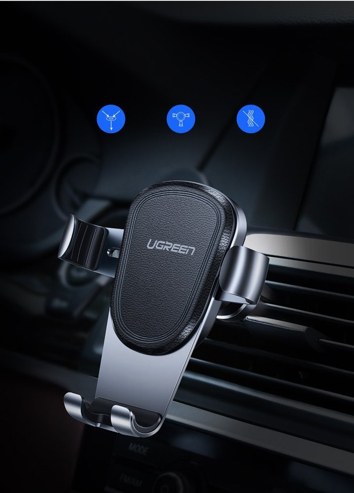 W zestawie znajduje się uchwyt grawitacyjny na nawiew kratkę wentylacyjną Gravity Car Mount.