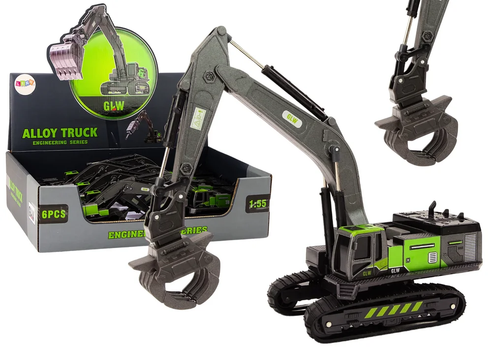 Koparka Gąsienicowa Chwytak Wiertnica Łyżka 1:55 Czarno-Zielona