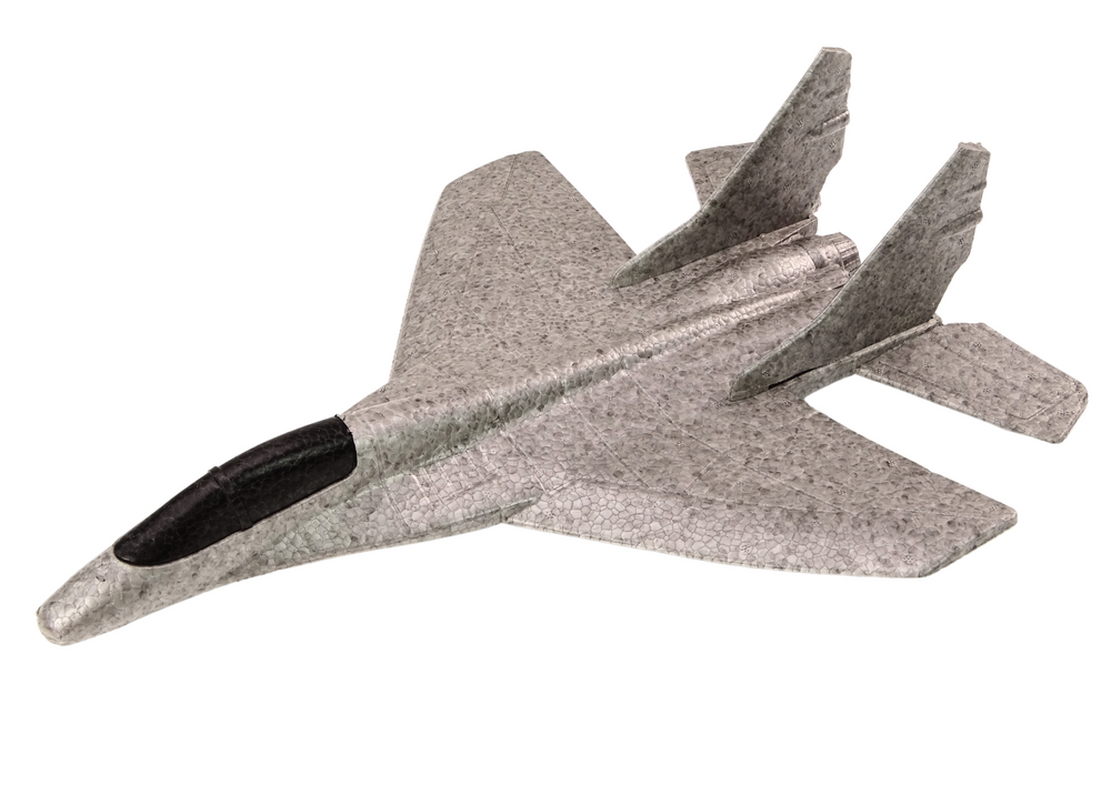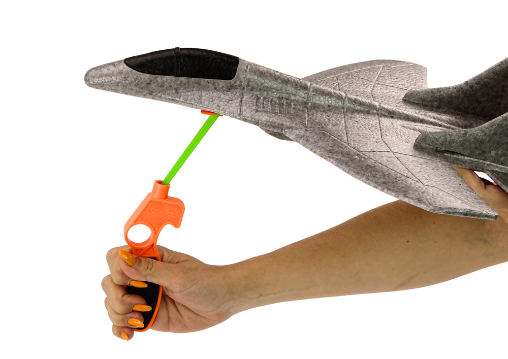 Samolot Myśliwiec Styropianowy Z Procą Wyrzutnia Szary