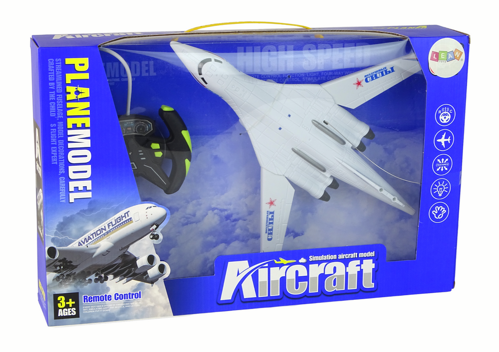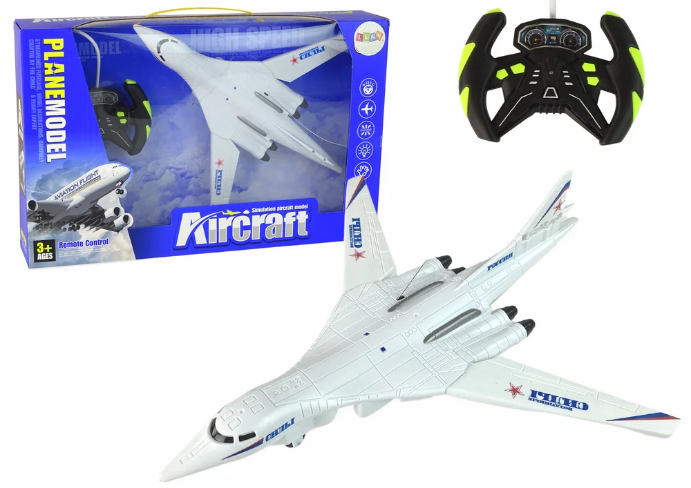 Samolot jest sterowany za pomocą specjalnego pilota ( pilot zasilany jest dwoma bateriami AA 1,5 V ( brak w zestawie ). Zabawka zasilana jest trzema bateriami AA 1,5 V ( brak w zestawie ) w formie kierownicy, co sprawia, że sterowanie jest intuicyjne i łatwe. Model ten potrafi poruszać się do przodu, do tyłu, skręcać w prawo i lewo, zapewniając mnóstwo frajdy podczas jazdy po płaskich powierzchniach.