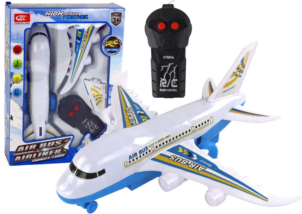 Samolot porusza się płynnie po różnych powierzchniach dzięki zamontowanym kołom, a precyzyjne sterowanie za pomocą ergonomicznego pilota pozwala na łatwe manewrowanie. Obsługa jest intuicyjna, co sprawia, że nawet najmłodsi użytkownicy szybko opanują podstawy pilotowania.