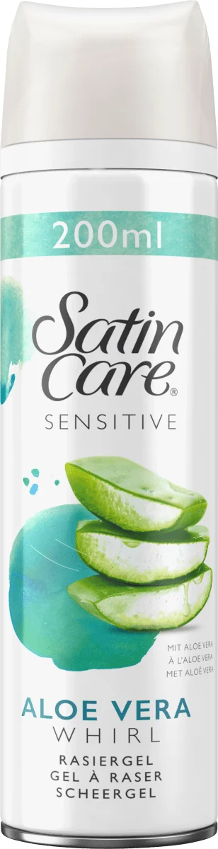 Gillette Satin Care Aloe Vera - żel do golenia dla kobiet z łagodzącym podrażnienia Aloesem. Unikalna formuła żeli Satin Care, z dodatkiem substancji nawilżających i wygładzających. Zawiera jedwabne proteiny, które zapewniają możliwie najdelikatniejsze golenie.