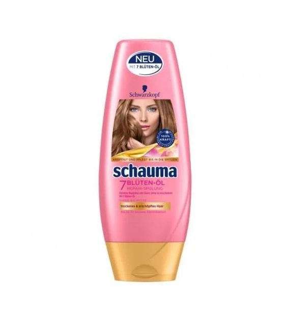 Odżywka do włosów Schwarzkopf Schauma 7-Blüten-Öl to doskonały wybór dla osób pragnących uzyskać gładkie i lśniące pasma. Jej formuła wzmacniająca skutecznie naprawia oraz uelastycznia włosy, nadając im zdrowy wygląd. Dzięki kompleksowi mikroelementów, w tym witaminom i naturalnemu białku, produkt odżywia włosy od nasady po same końce.
