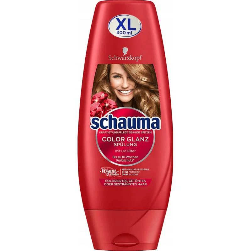 Schauma Color Glanz to szampon, który zapewnia długotrwałą ochronę koloru do 10 tygodni. Dzięki sprawdzonej formule, włosy zyskują promienny i intensywny blask. Odżywcza formuła zawiera kompleks mikroelementów, w tym witaminy oraz naturalne białko, co przyczynia się do wzmocnienia włosów od nasady aż po końce.